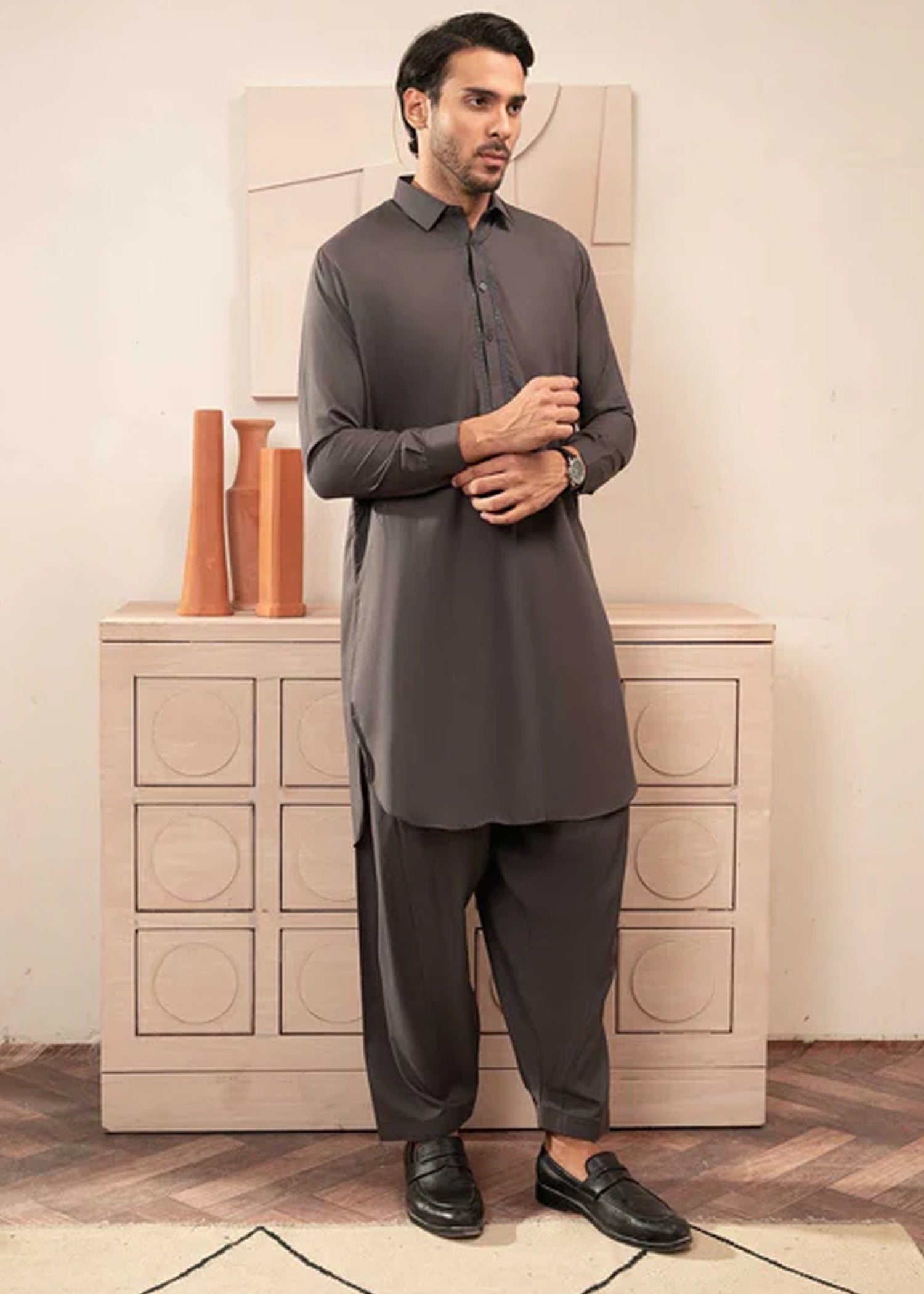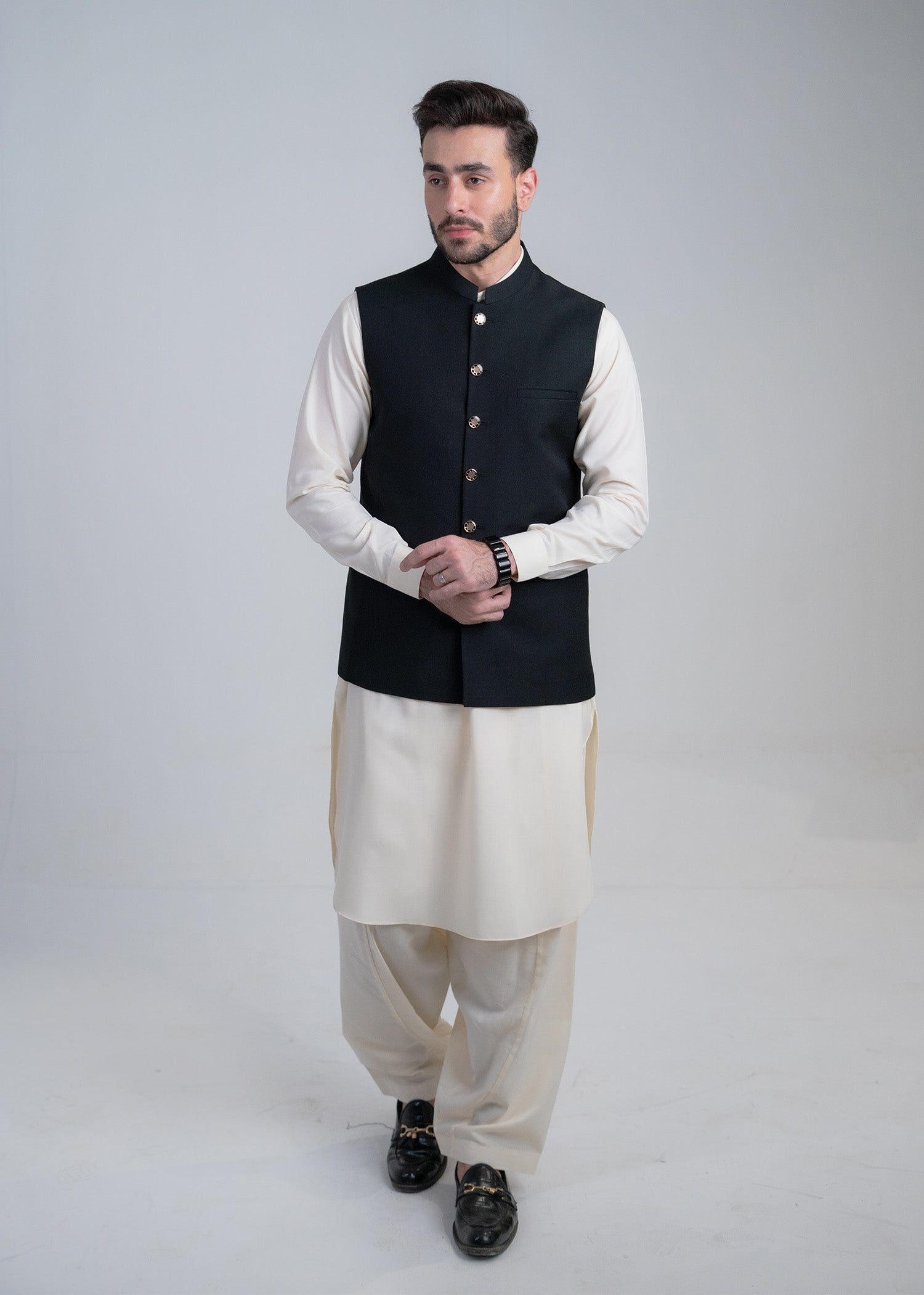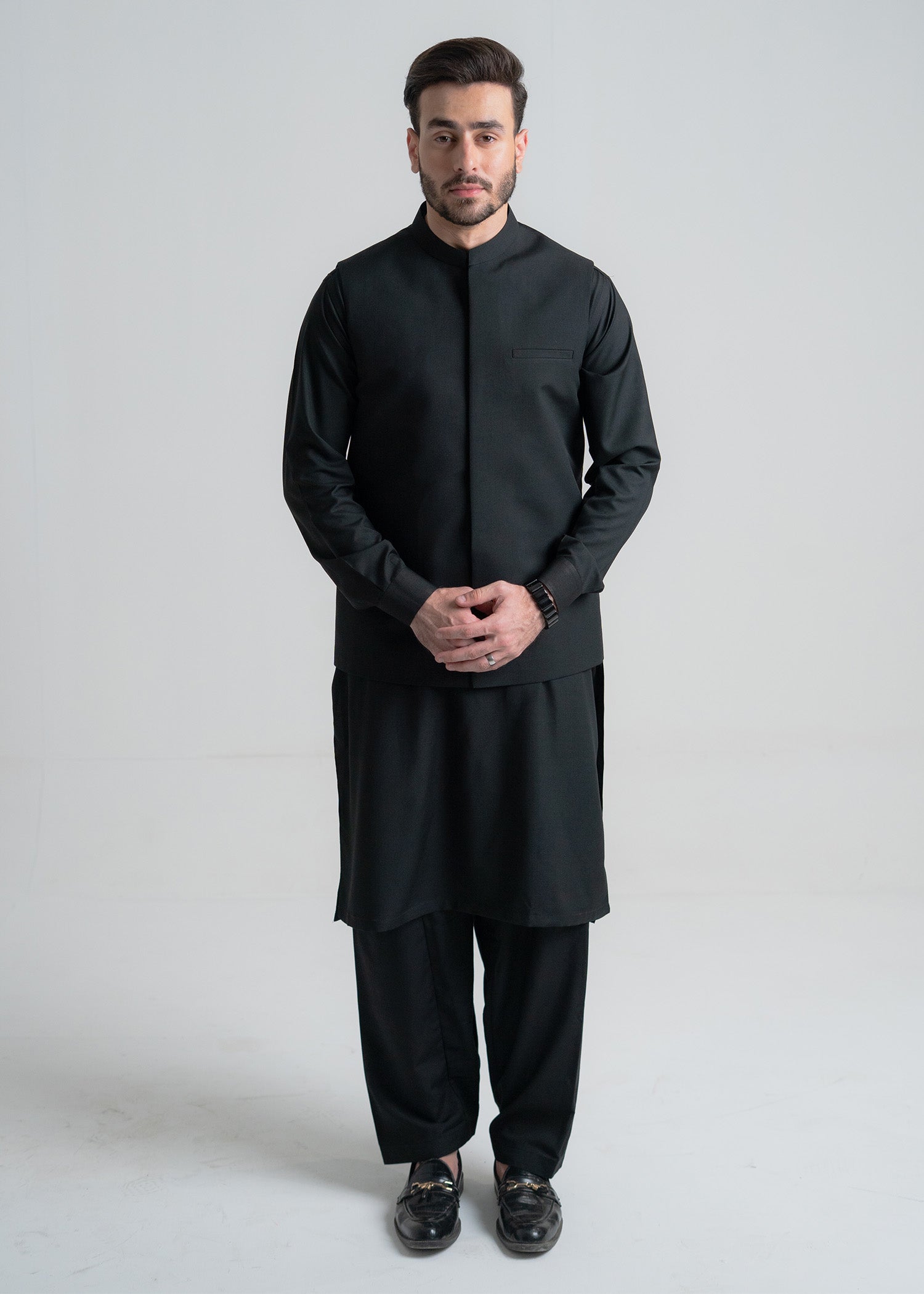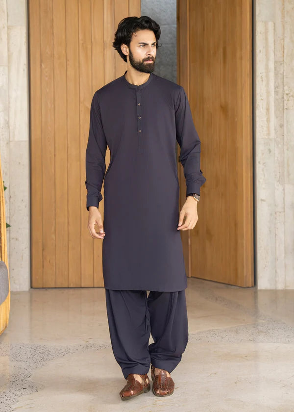 Black Collar Plain - Kameez Shalwar - Men