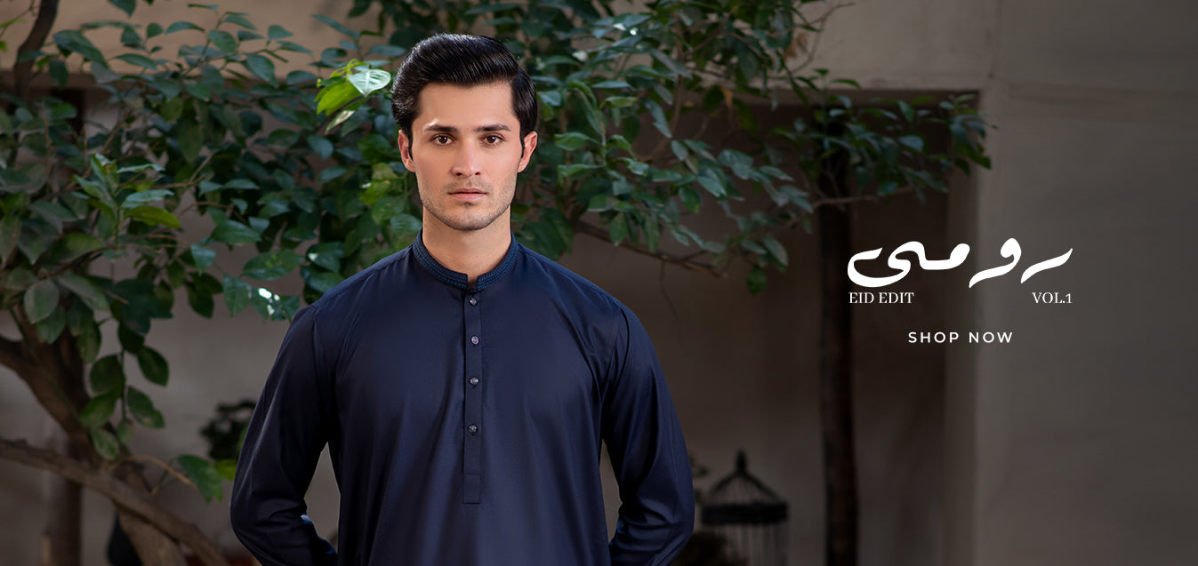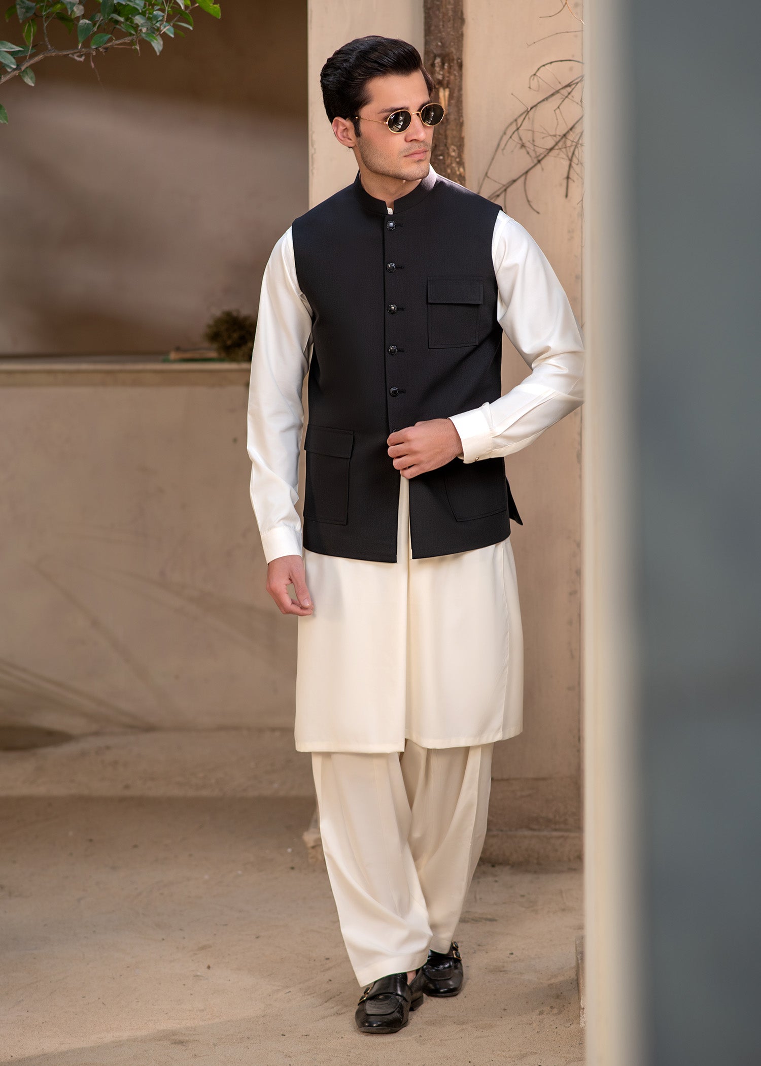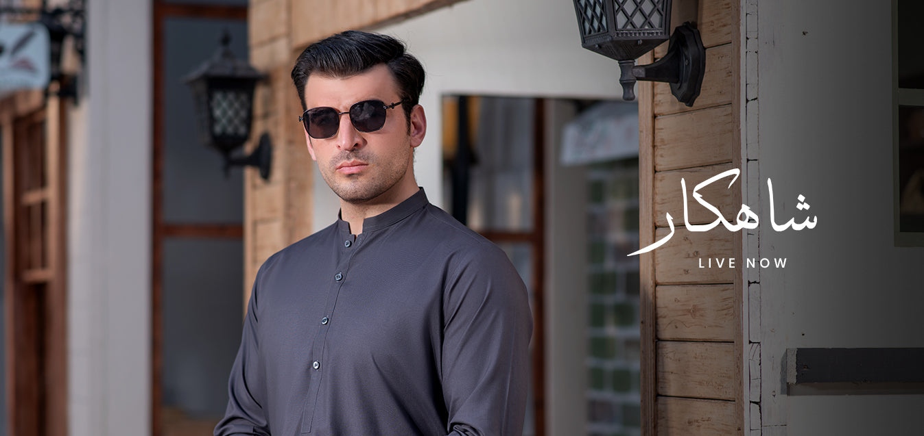 Black Collar Plain - Kameez Shalwar - Men